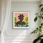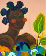 "Her Garden" pictures a woman crowned in her Nubian knots wrapped in bold abstract layers. She radiates confidence and strength within her sanctuary, her garden, a space of joy, growth, and self-expression.